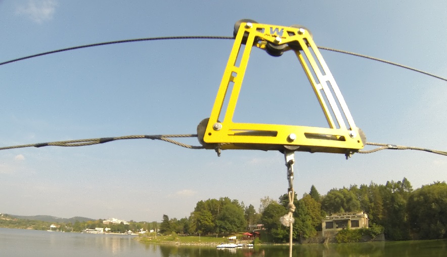 The cableway can be stopped at any time and the rider can restart after falling in the water.